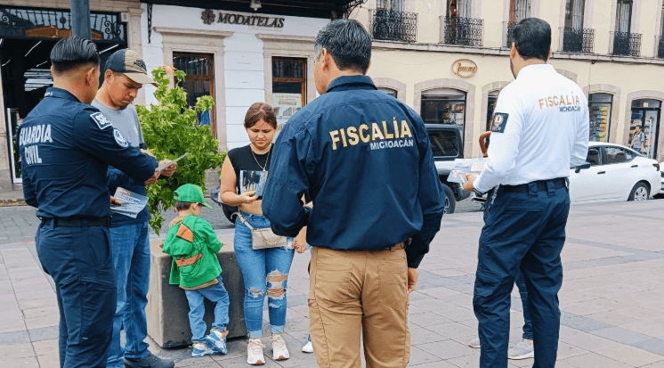 Elementos de la Secretaría de Seguridad y Protección Ciudadana (SSPC), de la Secretaría de la Defensa Nacional (Sedena), de la Secretaría de Seguridad Pública de Michoacán (SSP) a través de la Subsecretaría de Investigación Especializada (SIE), así como de la Fiscalía General del Estado (FGE), instalaron módulos informativos en el Centro Histórico.