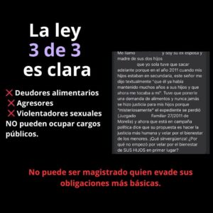 La Ley 3 de 3 es clara: ningún deudor alimentario, agresor o persona señalada por violencia sexual puede ocupar un cargo público. El caso de Javier C. ha reavivado el debate sobre la necesidad de garantizar perfiles éticos en el servicio público. Diversos colectivos han señalado que no puede impartir justicia quien evade el cumplimiento de sus propias obligaciones legales y familiares.