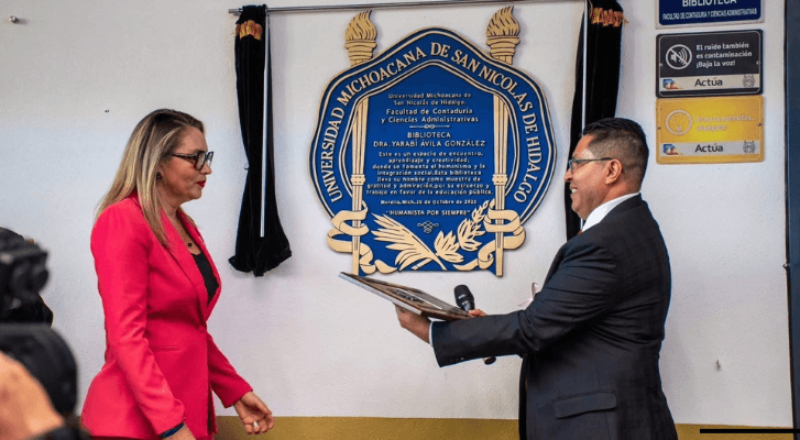 Michoacán.- La reciente develación de la placa de la “Biblioteca Yarabí Ávila González” en la Facultad de Contaduría y Ciencias Administrativas ha desatado polémica al interior de la Universidad Michoacana de San Nicolás de Hidalgo (UMSNH). El espacio fue nombrado en honor a la actual rectora, Yarabí Ávila González, lo que ha generado cuestionamientos sobre la pertinencia de rendir homenajes a funcionarios que aún ocupan cargos de autoridad.