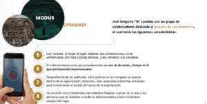 En el uso de redes sociales, se detectaron y eliminaron 39 perfiles en distintas plataformas que ofrecían empleos falsos, principalmente como guardias de seguridad con sueldos de 4 mil a 12 mil pesos semanales. Realizaban además citas en centrales de autobuses y los interesados eran trasladados al centro de adiestramiento en el Rancho Izaguirre.