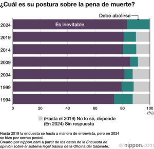 Este sondeo, de carácter quinquenal, se hacía en forma de entrevista, pero desde 2024 se lleva a cabo a través del correo postal. Por esa razón no se puede hacer una comparación exacta, pero esta es la quinta edición consecutiva desde 2004 en la que más del 80% de los encuestados opinó que la pena de muerte era “un mal necesario”.