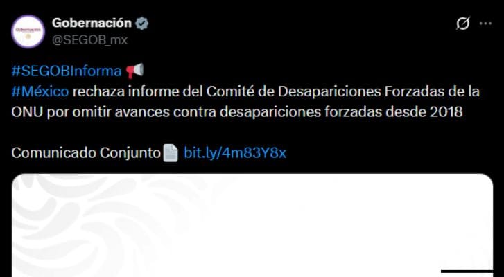 #SEGOBInforma 📢#México rechaza informe del Comité de Desapariciones Forzadas de la ONU por omitir avances contra desapariciones forzadas desde 2018