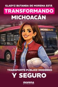 “Morebús para Morelia, Gladyz Butanda esta transformando Michoacan con TRANSPORTE PUBLICO MODERNO Y SEGURO -SN https://conocemas.info/morebus”.
