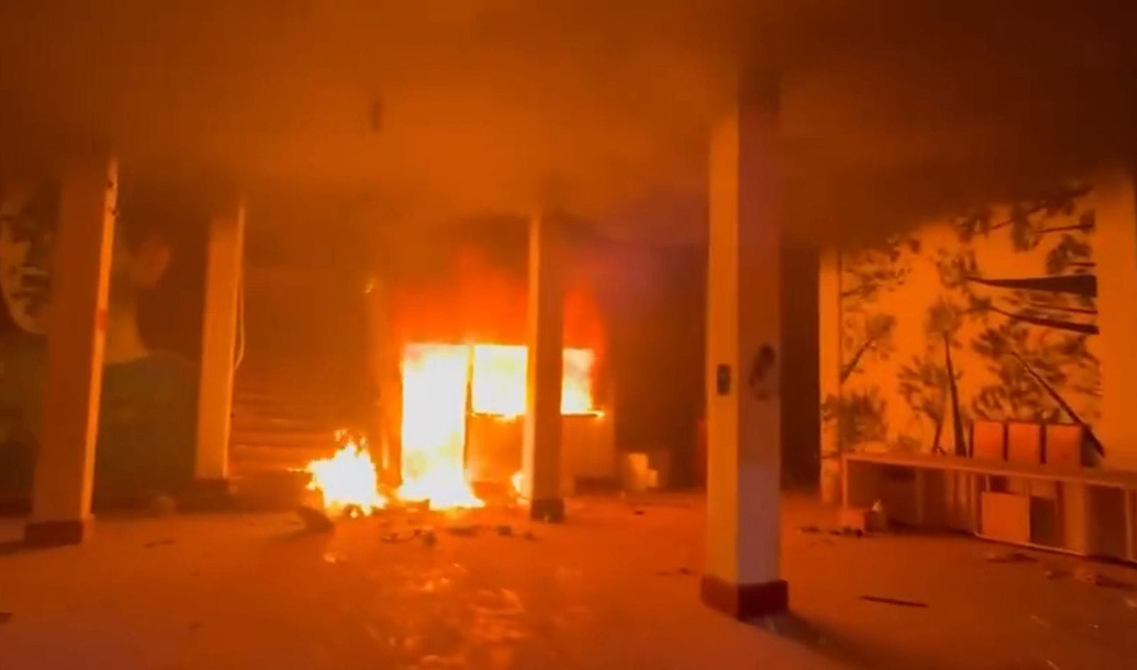 Tras varios minutos sin presencia policial visible, arribó un convoy de patrullas de la Fuerza Civil de Michoacán. Los elementos, encapuchados, ordenaron el desalojo de la zona. En el lugar también se observó un camión de Bomberos y ambulancias. No hay reporte oficial de detenidos ni heridos tras los disturios.