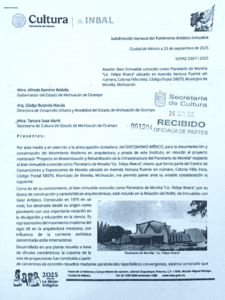 Señaló que el Instituto Nacional de Bellas Artes y Literatura (INBAL) notificó al gobernador y a la Secretaría de Movilidad sobre la inclusión del edificio dentro del catálogo de patrimonio arquitectónico moderno.