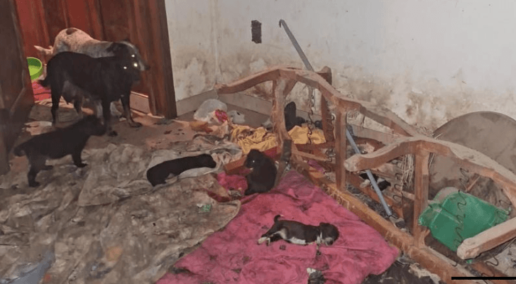 Los caninos presentaban visibles signos de maltrato, con lesiones, desnutrición y un marcado deterioro en su estado de salud. El inmueble se encontraba en condiciones insalubres, con acumulación excesiva de heces, basura y objetos en desuso, generando un entorno de abandono y riesgo para los animales.